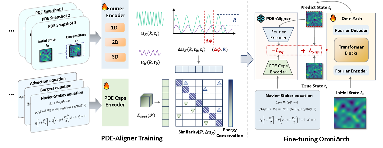 在微调阶段,PDE-Aligner通过对比学习将符号方程与数值演化对齐: