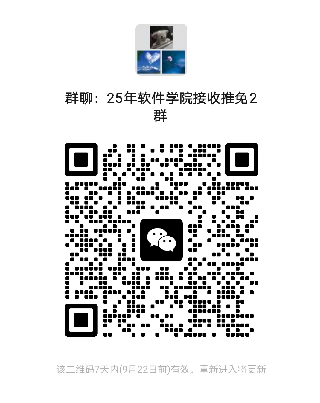 请所有参加软件学院接收推荐免试研究生报名的考生扫描以下二维码进群咨询。(二个群任选其一即可,一个考生仅允许通过一个手机号进群,进群后,请修改群昵称为“姓名+身份证号后4位”。)