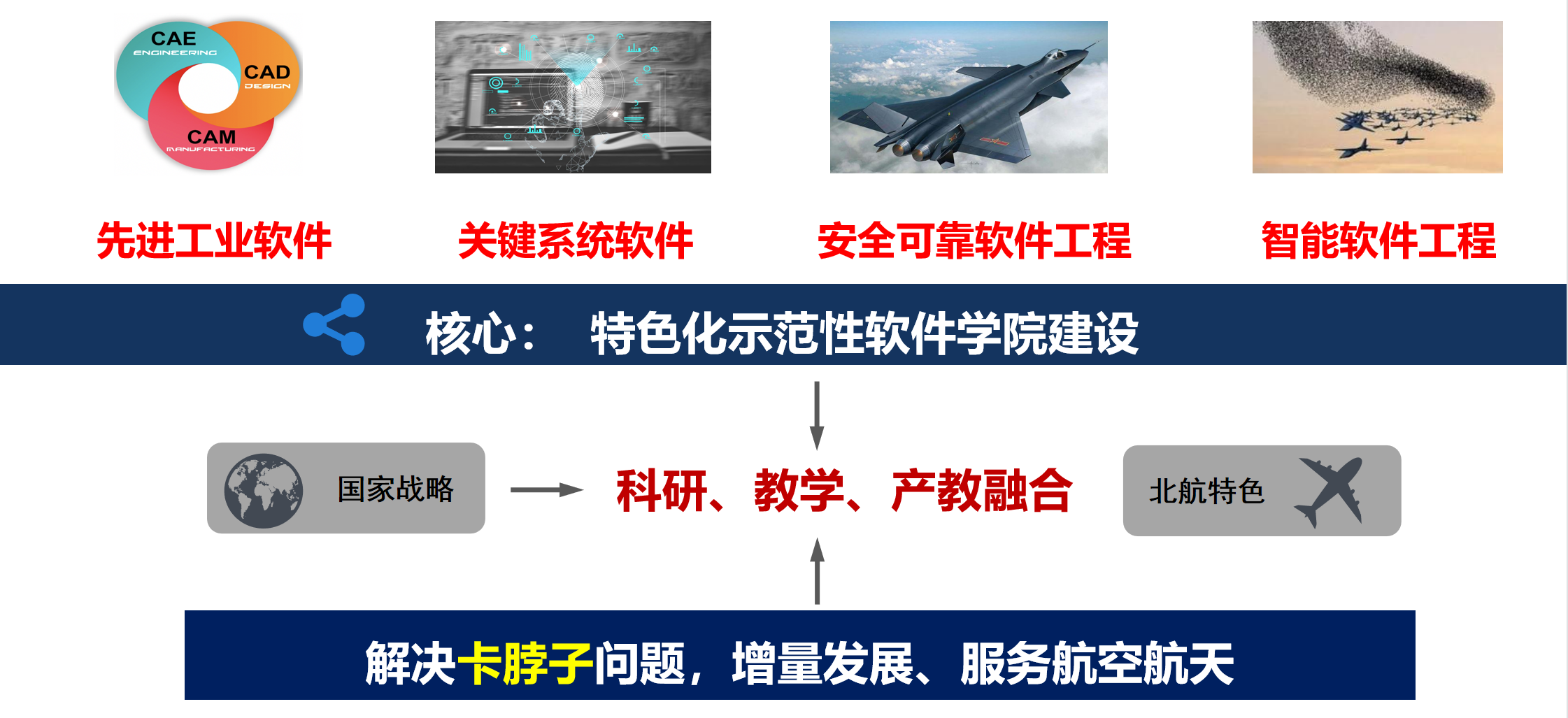 软件是信息技术之魂、网络安全之盾、经济转型之擎、数字社会之基,是引领新一轮科技创新的源动力。北航是我国最早开展软件工程研究的单位之一,软件学院依托软件工程A+学科,聚焦关键软件国家战略发展需要,围绕“特色化示范性软件学院”建设要求,目前已形成先进工业软件、关键系统件、安全可靠软件工程、智能软件工程等特色化学科方向,具备国内顶尖的科研队伍和平台资源,为学科建设、人才培养、产教融合发展奠定坚实基础。